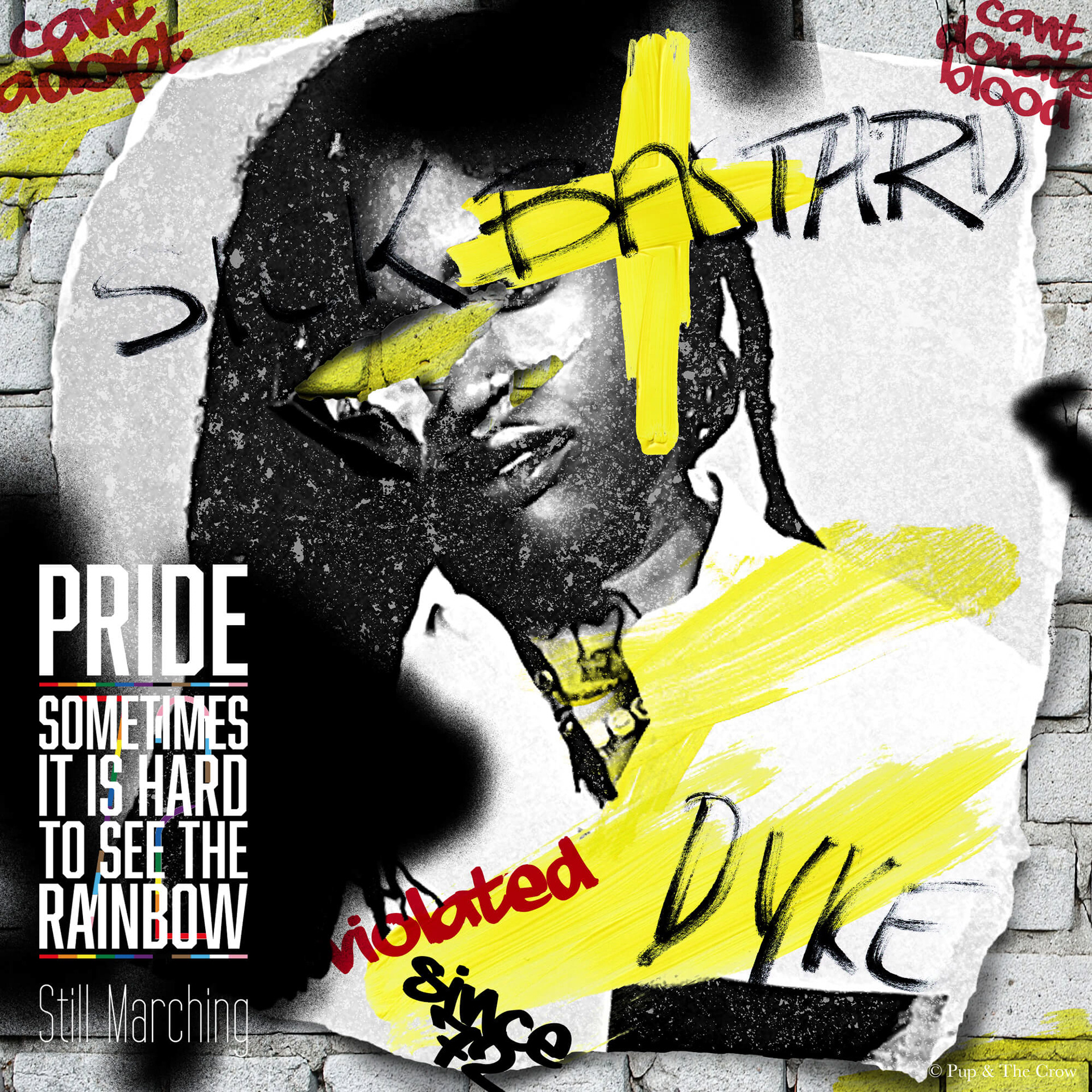 I wanted to create a piece of work that represents what Pride means for me. On the anniversary of the first Pride march in London, I wanted to remind people that it's not all rainbows and that it started as a protest and for me, we still need to keep the protest happening and this is my own protest. In about 18 European countries, same-sex partnerships still lack legal recognition. Additionally, only 11 countries allow for legal gender recognition based on self-determination, a crucial aspect of transgender rights. We are seeing countries actively targeting LGBTQ+ community and bringing in legislation to persecute them. Nigeria, Italy & the US have introduce restrictions and even law targeting the community. We still need to be raising our voice not a glass!